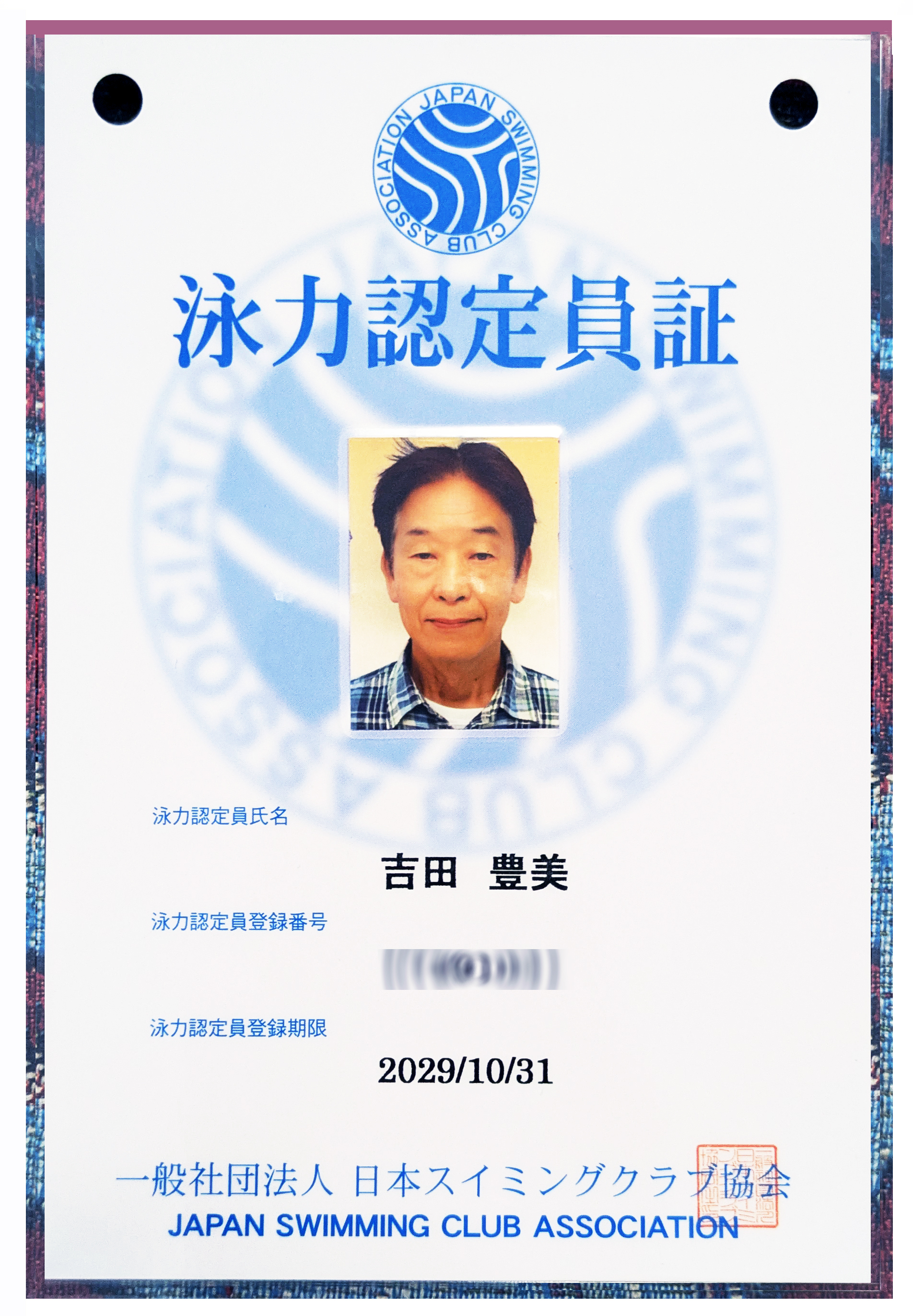 ・大阪大阪市:男性31歳、水泳暦28年,JO,インターハイ,指導暦10年,日赤水安救助員 ・兵庫西宮市:女性41歳、小6〜高3競泳選手,インターハイ,C級指導員,高校体育講師 ・兵庫尼崎市:男性45歳、小6から高3JO,全中,全高,インカレ,国体3位,日本選手権 ・兵庫神戸市:女性52歳、水泳歴27年,アクアダンス・水泳指導暦27年,機能改善,水泳教師 ・東京杉並区:女性58歳、アクアダンス,C級指導員,教室指導20年,日赤水安救助員 ・東京杉並区:女性41歳、障害児童指導,教職免許,基礎指導員,保育士 ・東京大田区:男性42歳、オーストラリアLIFE GURD,日赤水安救助員,SS指導員,自営業 ・東京大田区:女性30歳、C級指導員,日赤水安救助員,アクアビクス指導員 ・東京足立区:女性49歳、SC指導暦19年(育成指導9年,成人4年),日赤水安救助員 ・沖縄:女性49歳、小1〜SCで競泳・JOシンクロ2位,全日本選手権5位、シンクロコーチ ・千葉浦安市:男性45歳、日水連水泳指導員,水泳指導管理士,日赤水安救助員 ・千葉浦安市:男性35歳、小2〜高校選手,インターハイ,SC指導暦10年,水泳指導管理士 ・長野長野市:男性45歳、障害者スポーツ協会中級指導員,学校指導,日赤水安救助員 ・愛知県犬山市:女性26歳、年長〜高校まで競泳、スポーツ科学専門学校卒 ●アクアウオーキング・アクアビクス担当 ・東京杉並区:女性60歳、アクアダンス,C級指導員,教室指導20年,日赤水安救助員 ・兵庫神戸市:女性52歳、水泳歴27年,アクアダンス・水泳指導暦27年,機能改善,水泳教師 ●アーティスティックスイミング選手担当 ・岐阜・東京・愛知:女性49歳、小1〜水泳学校で競泳、 シンクロナイズドスイミング選手JO2位、全日本選手権5位、 小堀流踏水術初段、日赤水安救助員、ダイビングインストラクター、 ジュニア・シニア水泳指導、アクアダンス指導、古式泳法指導、指導歴22年。